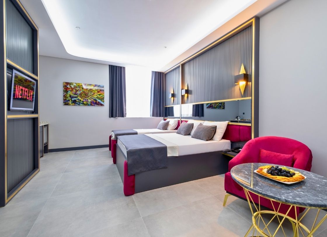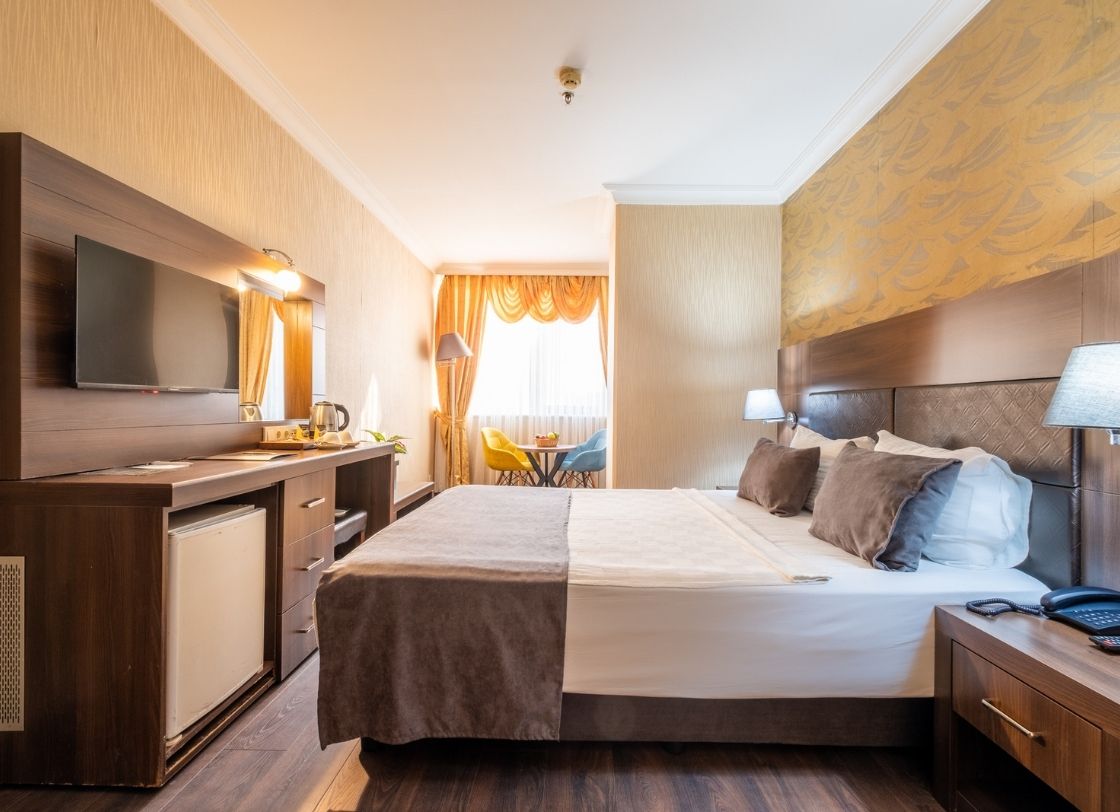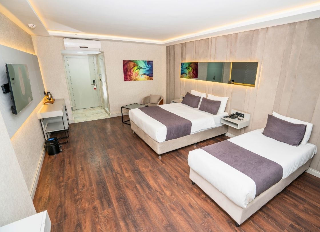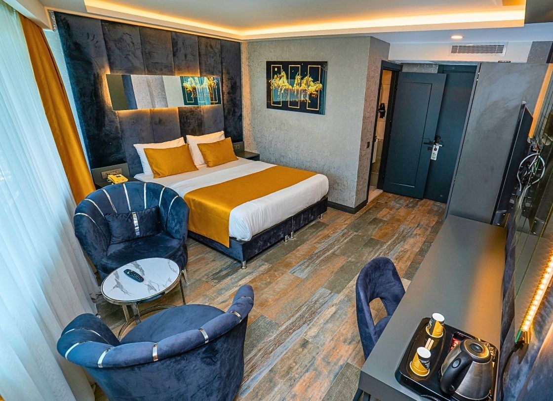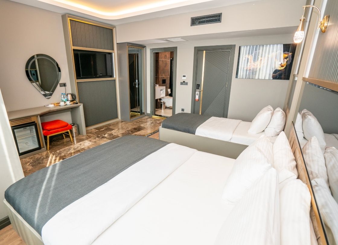 216 Prestige Hotel, İstanbul’un merkezi bölgelerinden birinde konforlu ve lüks bir konaklama deneyimi sunmak için tasarlanmış şık bir tesistir. Misafirlerimize eşsiz bir konfor, modern olanaklar ve yüksek kaliteli hizmet anlayışı sunarak, iş ve tatil amaçlı seyahatler için mükemmel bir tercih oluşturmaktadır. Tesisimiz, zarif ve modern tasarımıyla her yaştan misafire hitap etmektedir. 216 Prestige Hotel, geniş ve ferah odalarıyla konuklarının her türlü ihtiyacını karşılayacak şekilde donatılmıştır. Her odada, yüksek kaliteli mobilyalar, rahat yataklar ve modern banyo olanakları mevcuttur. Konumu itibariyle İstanbul’un en dinamik bölgelerine yakın olan 216 Prestige Hotel, alışveriş merkezleri, restoranlar ve eğlence alanları gibi önemli noktalara kolay erişim imkânı sunmaktadır. Ulaşım açısından oldukça merkezi bir konumda yer alan tesisimiz, toplu taşıma ve ana yollar sayesinde şehrin her yerine rahatça ulaşılabilmektedir.