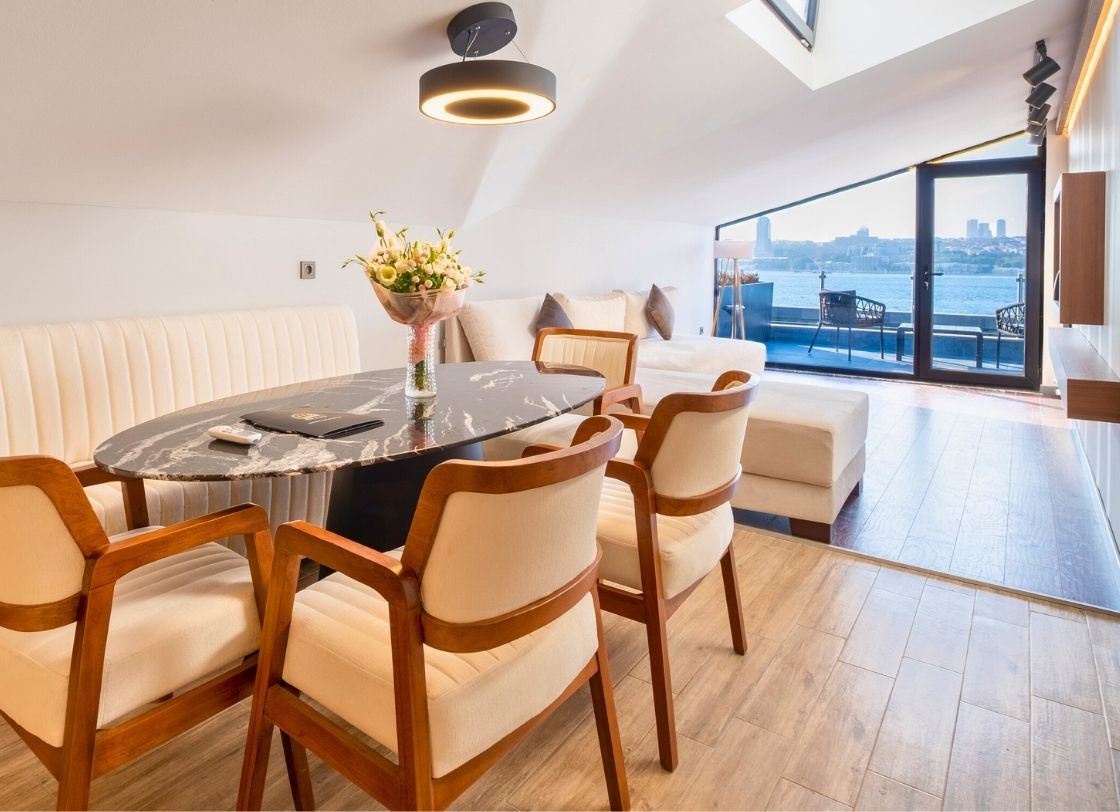 216 Bosphorus Suite, İstanbul’un Üsküdar bölgesinde, sahil üstünde yer alan modern ve şık bir konaklama tesisidir. Boğaz manzaralı odalarımız, konuklarımıza eşsiz bir Boğaz manzarası eşliğinde konforlu bir deneyim sunmaktadır. Her detayda zarafetin ve rahatlığın ön planda tutulduğu tesisimiz, iş ve tatil amaçlı konaklamalar için ideal bir tercihtir.Modern tasarımı ve geniş odalarıyla misafirlerine yüksek standartlarda konfor sunmaktadır. Tesisimizde, konuklarımıza 24 saat açık resepsiyon, ücretsiz Wi-Fi, günlük temizlik hizmetleri gibi olanaklar sunulurken, hem iş hem de dinlenme amacıyla gelenler için her türlü ihtiyaca hitap edilmektedir. Sahil kenarındaki lokasyonu sayesinde, misafirlerimize Üsküdar Sahili’ne ve çevresindeki sosyal olanaklara kolay erişim imkanı sağlanmaktadır. Bunun yanı sıra, 216 Bosphorus Suite, İstanbul’un önemli noktalarına ve tarihi semtlerine yakın konumuyla öne çıkmaktadır. Kuzguncuk gibi tarihi bölgeler ve Üsküdar Sahili’nde keyifli yürüyüşler yapma imkânı, misafirlerimize kültürel bir zenginlik sunmaktadır. Ayrıca, tesisimizden Avrupa Yakası’na kolay geçiş sağlayan ulaşım seçenekleri ile İstanbul’un her köşesine rahatça ulaşabilirsiniz.